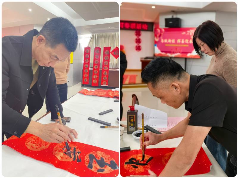 活動現(xiàn)場暖意融融、紙墨飄香。集團(tuán)書法愛好者揮毫潑墨,以隸、楷、行等不同字體書寫春聯(lián)和“福”字?!敖瘃R迎春財運旺,平安喜樂福滿堂”“岐山疊翠凝瑞氣,榕水歡歌潤錦程”等一副副寓意吉祥的春聯(lián)在筆尖流淌,既傳遞出對新年的美好祝愿,也寄托著對職工們的真摯祝福。